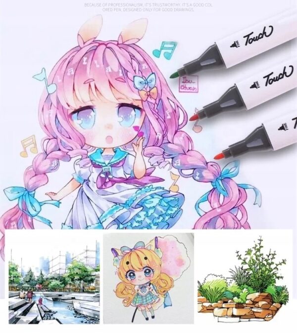 Zestaw kolorów Mazaków został dobrany, że znajdą one zastosowanie w różnych dziedzinach rysunku.Pisaki są wodoodporne, oznacza to, że mogą być użyte na różnych powierzchniach, papierze, metalu, szkle, ceramice, kartonie, plastiku